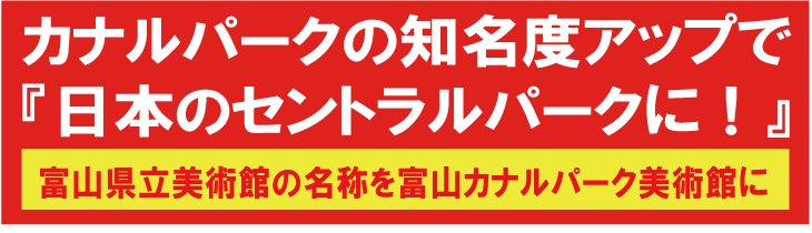北陸新幹線で富山駅を訪れる観光客をいかに増やしていくか。その為には、富山市内に観光地を増やす必要がある。全国区のブランド化ができる可能性があるのは、『カナルパーク(富岩運河環水公園)』だろう。一時期、世界でもっとも美しいスターバックスがある公園として、全国での知名度が上がったが、その後はさほど注目されていない。問題なのは、カナルパークという名称の浸透がまだ低い点だ。もっと、カナルパークという名称を、目にする耳に聞くようにする必要がある。そこで、カナルパークの周辺施設を、積極的に名称にカナルパークをつけていく必要性がある。まずは、県の施設で名称変更したい。カナルパークは富山県立美術館があるが、名称自体が富山県立という固い印象で、とてもお洒落感がない。名称からも、どこにあるかわからない。そこで、金沢21世紀美術館の名称にも負けないように、富山県立美術館から名称を『富山カナルパーク美術館』に変更してはどうだろうか。名称からも場所がわかり、印象も柔らかく、訪れたい印象を与えると考える。